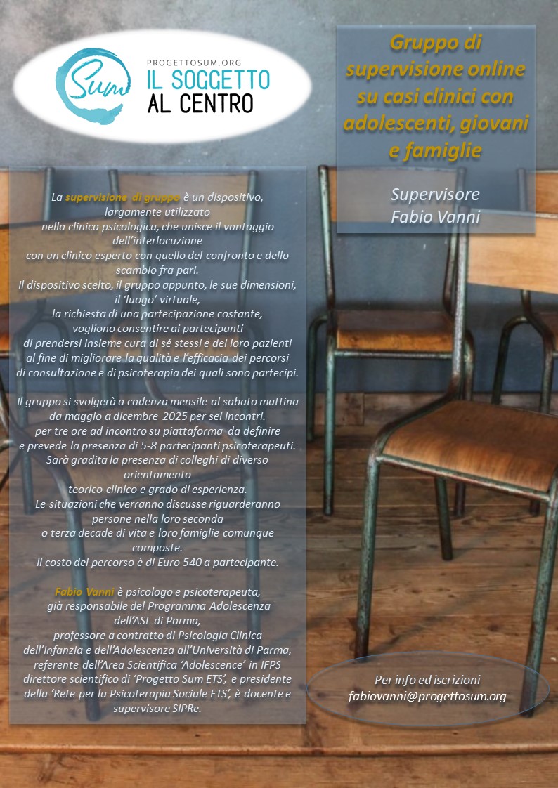 Gruppo supervisione su casi di adolescenti, giovani, famiglie 2025